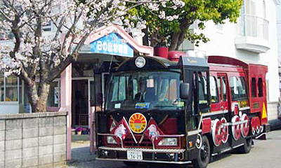 「友達いっぱい、夢いっぱい」と、夢と希望をいっぱいのせてSLバスが走っています。